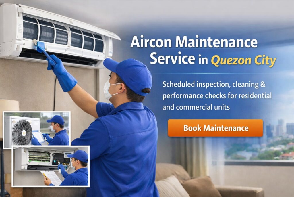 Aircon maintenance in Quezon City keeps air conditioners operating efficiently through scheduled inspection, cleaning support, and performance checks that prevent breakdowns, cooling loss, and high electricity consumption. Preventive maintenance helps residential and commercial aircon units maintain stable airflow, cooling capacity, and safe electrical operation.