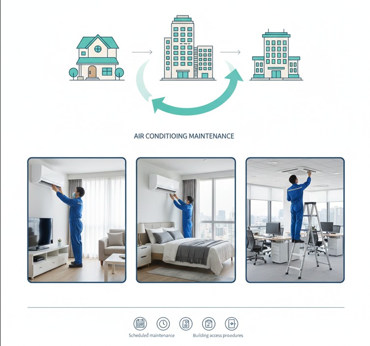 Maintenance visits follow building access and servicing procedures appropriate for indoor units.